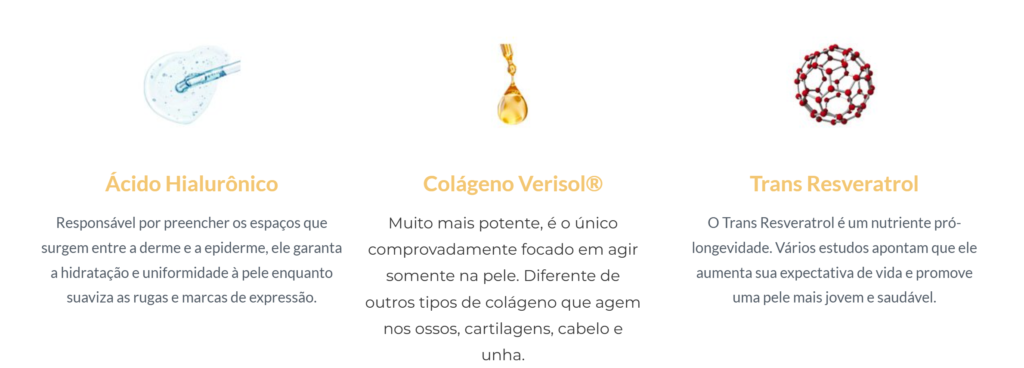 - Ação: Ajuda a manter a sustentação e a elasticidade da pele, preenchendo os espaços entre as células e reduzindo a aparência de linhas de expressão e rugas finas.